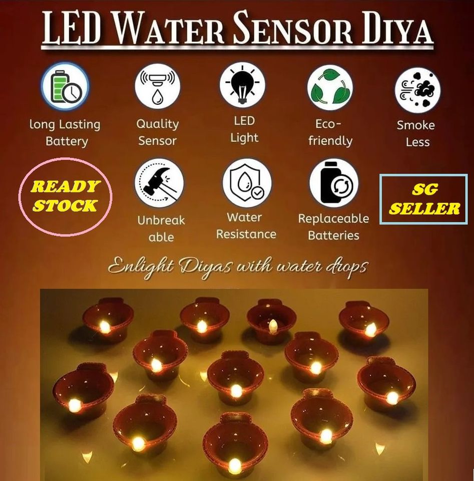 • Water -Based Diyas, Agal vilakku, : These Diyas switch on when you put water on them (one spoon of water). As you drop water they illuminate a warm orange light similar to oil Diya creating a traditional ambiance in the atmosphere. Use these Diyas to decorate and lighten your home, rangoli, Deepavali, Pongal, Karthigai, Christmas festivals, or any special occasions and surprise your guest and neighbors with this unique water Diyas.
