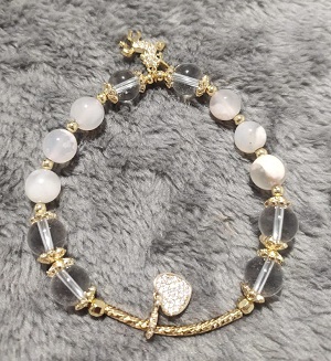 Handmade Cherry Blossom Agate with Clear Quartz in gold hardware bracelet