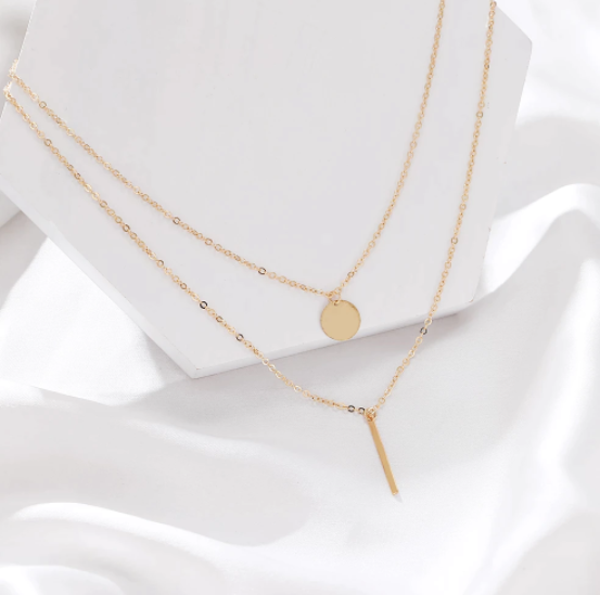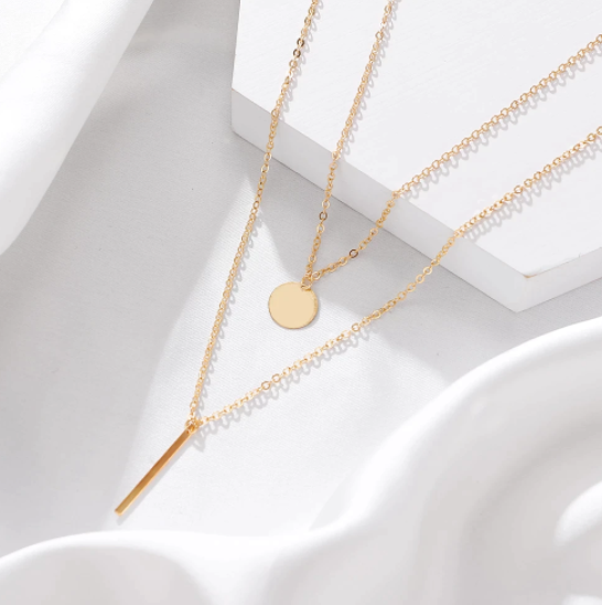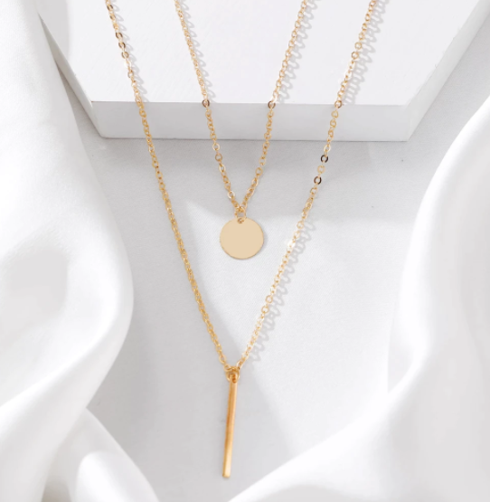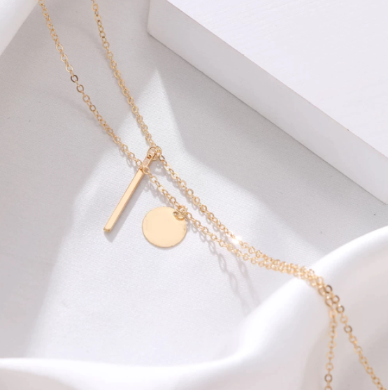 简约金链硬币吊坠项链Simple Gold Chain Pendant Necklace for Women Retro Coin Long Stick Choker Necklace Jewelry Party Gift