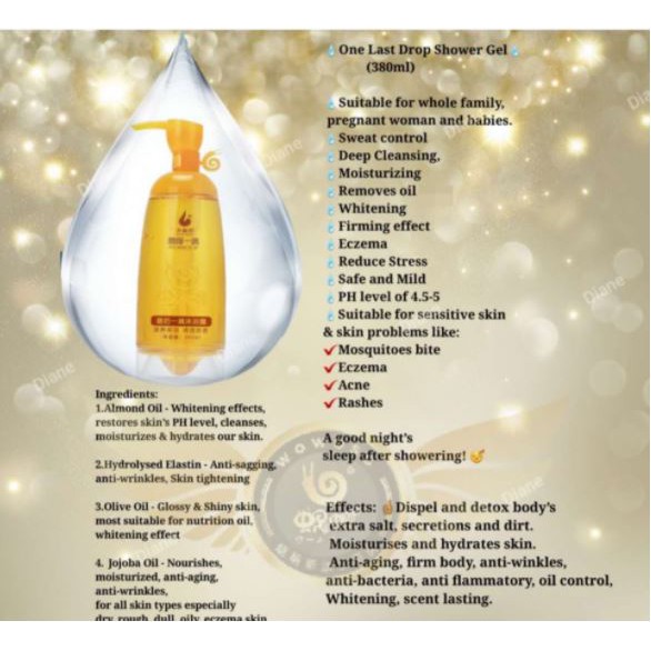Moisturises and hydrates skin Anti-aging, anti-wrinkles, anti bacteria, anti-inflammation Oil control, firm body, whitening, long lasting scent Transparent Bottle - to see exactly what is provided (No unwanted substances)