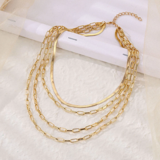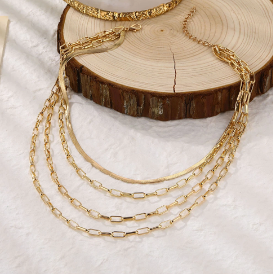 女士复古金色多层厚链项链 Vintage Golden Multilayer Thick Chain Necklace for Women 2020 Bohemian Geometric Layered Necklace Jewelry Gift