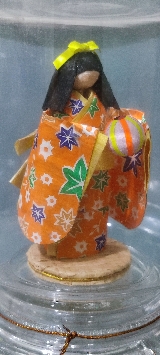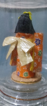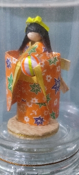 A 9 cm handicrafted Washi Paper doll in the bottle. All together will be around 17 cm height.