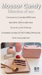 Moosor Compound Fibre Candy uses the latest black technology to shed the fats — to dispel extra oil and block off unwanted sugar WITHOUT the torture of diet.