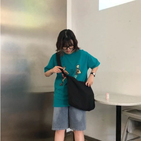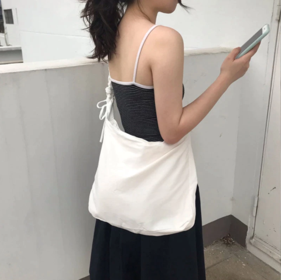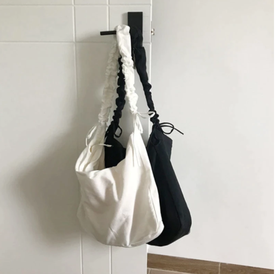 水桶斜挎包Women Bucket Messenger Bag Literary Simple Large Capacity Black White Wide Shoulder Strap Canvas Shoulder Bag
