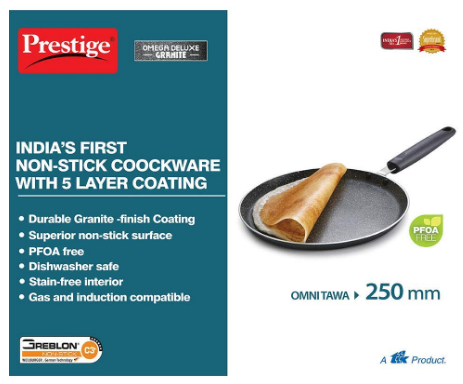 Prestige Omega Deluxe Granite Dosa Tawa, Black, 250 mm