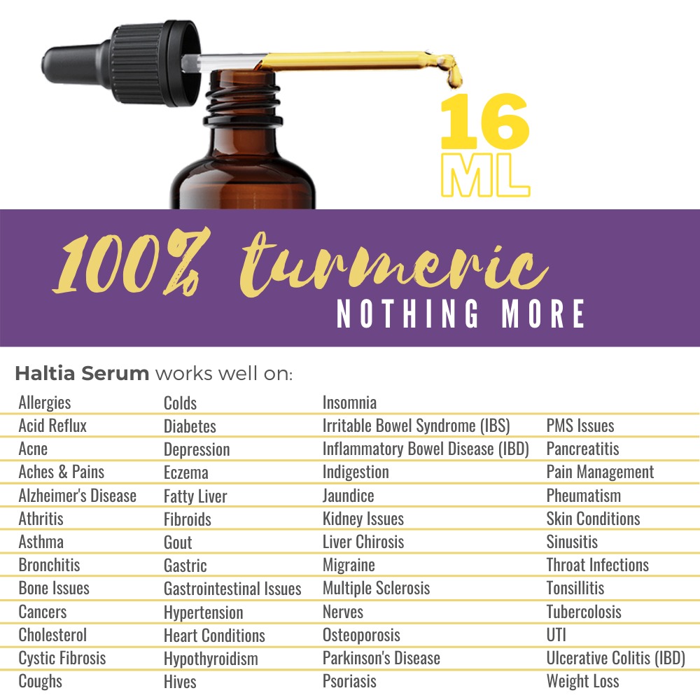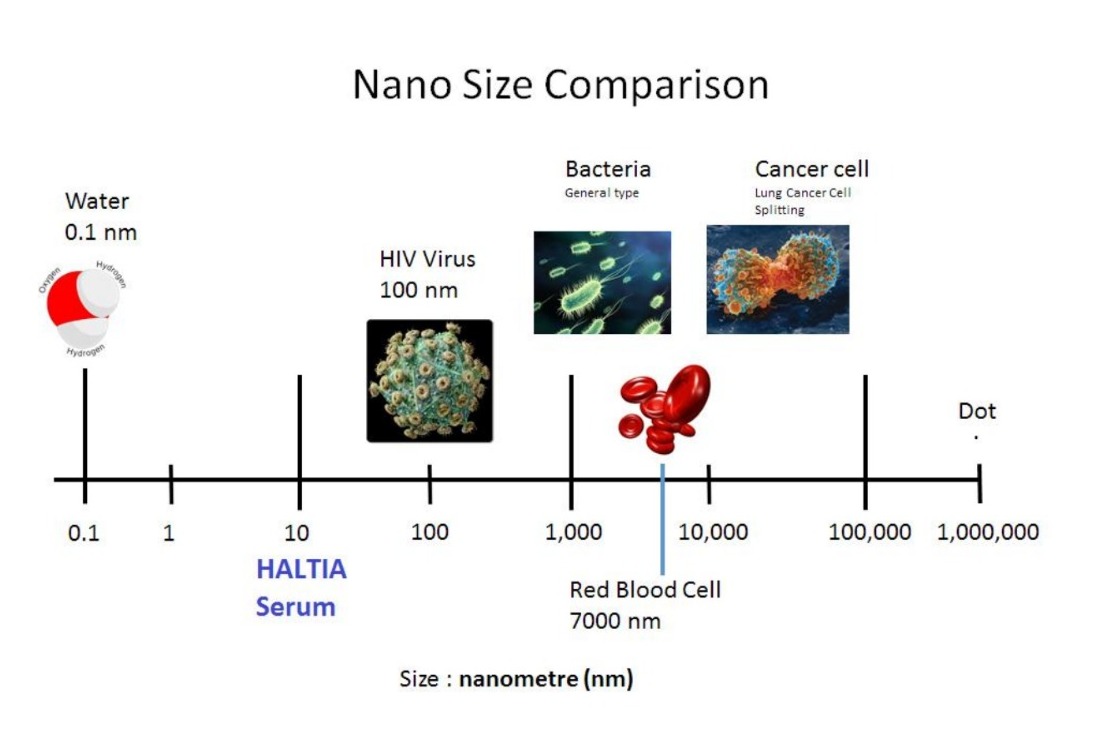 A unique blend of Health promoting premium quality turmeric roots packed with immense benefits, Haltia Gold not only holds the world record for the tiniest of Curcumin molecule ever developed @ 11.76nm in size But its also pH neural thereby closer to blood pH than any other Curcumin. Just a single drop of Haltia Gold is good enough to see n feel the difference. There isn’t another Curcumin supplement able to possess such immense therapeutic properties and also deliver them with maximum absorption rate to the human body. Why our Haltia Gold serum is Far Superior than any other Turmeric/Curcumin products! Simply the Purity, Potency and Penetration of Haltia Gold serum is unmatched. “Size Does Matter” Haltia Gold Serum molecular size comparison with pathogens (Bacteria, Viruses). HGS smaller than any known pathogens.