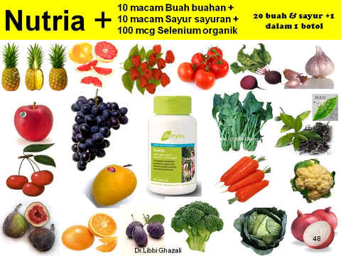 Nutria adalah 10 macam sari pati sayur dan buah ditambah dengan Selenium menjadi satu satu nya Suplemen yang kaya akan Antioksidan dari tumbuhan dan didukung oleh Selenium