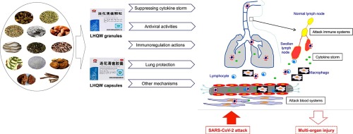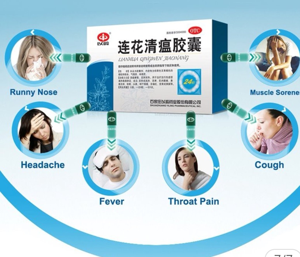To clear scourge and remove toxin, diffuse the lung and discharge heat. Used with system of heat toxin assailing the lung in influenza, manifested as fever or high fever, aversion to cold, muscular soreness, stuffy and runny nose, cough, headache, dry and sore throat, reddish tongue, yellow and greasy tongue coating.