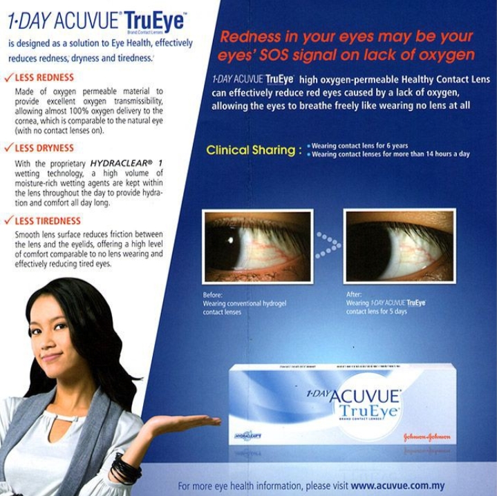 Enjoy clear and healthy eyes that breathe freely with 1-DAY ACUVUE® TruEye®. EYE-INSPIRED™ Design and the patented HYDRACLEAR®1 moisture-locking technology helps to keep your eye health in its natural state, all day long.
