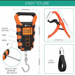 50kg/10g Digital Fishing Scale With Fish Grip Ruler Waterproof Scales For Luggage Travel Weighing Steelyard Hanging Scale.