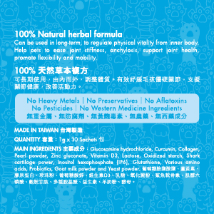 Glucosamine hydrochloride, curcumin, collagen, pearl powder, zinc gluconate, vitamin D3, lactose, oxidized starch, shark chondroitin, phytic acid, glutathione, multiple amino acids, prebiotics, sheep Milk powder, yeast