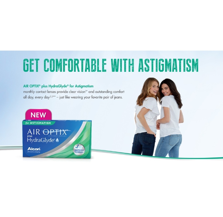 Astigmatism is the most common vision problem, caused by an irregular shape of the cornea. Astigmatism can usually be corrected with contact lenses, such as Air Optix for Astigmatism (also called Air Optix Toric). They will help take away the blur that is caused by this condition.