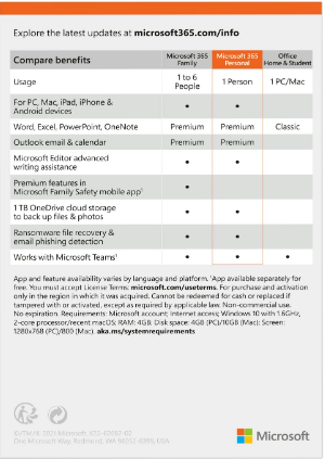Experience advanced security with Personal Vault and premium Office apps (Word, PowerPoint, Excel, outlook)and ongoing technical support; annual subscription